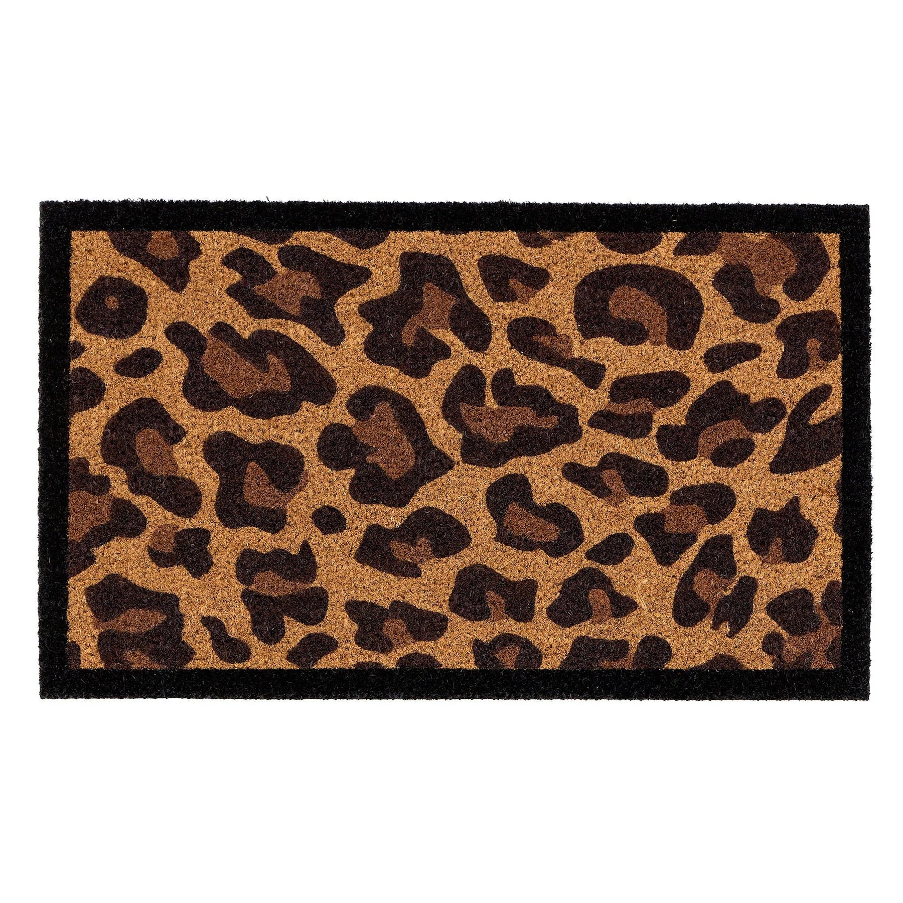 Step into style with the Leopard Print Coir Doormat 45x75cm
