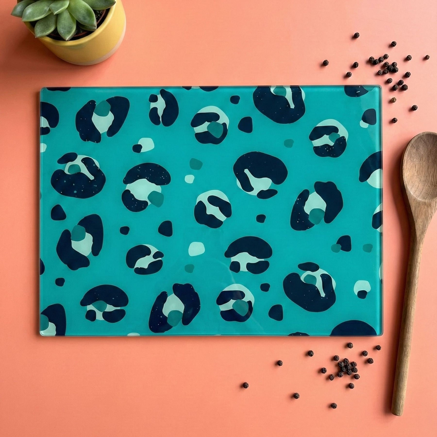 Teal Green Leopard Print Glass Chopping Board - Yililo
