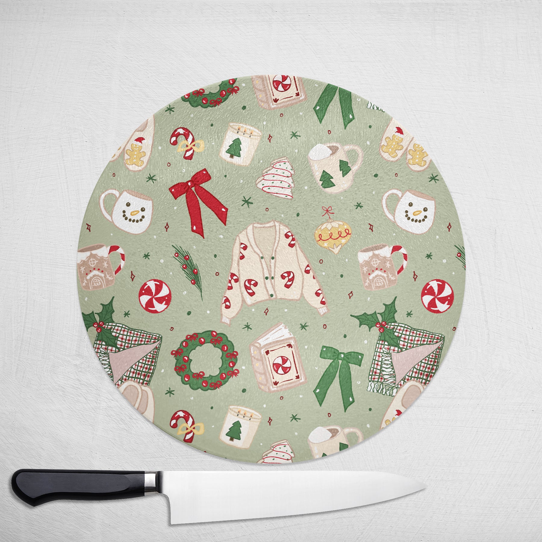 Mugs, cardigans, candles and gingerbread this 30cm smooth glass board captures everything cosy about Christmas.