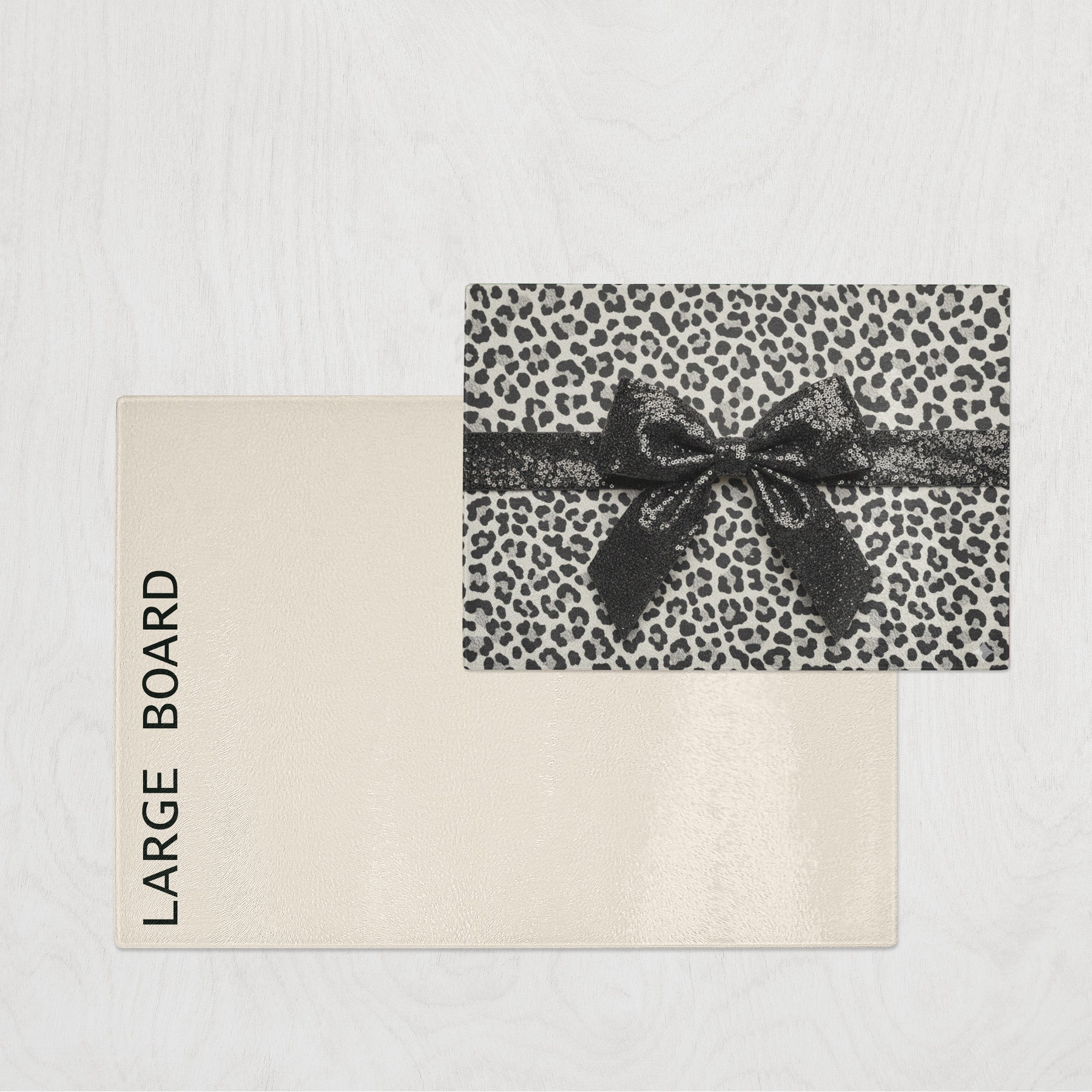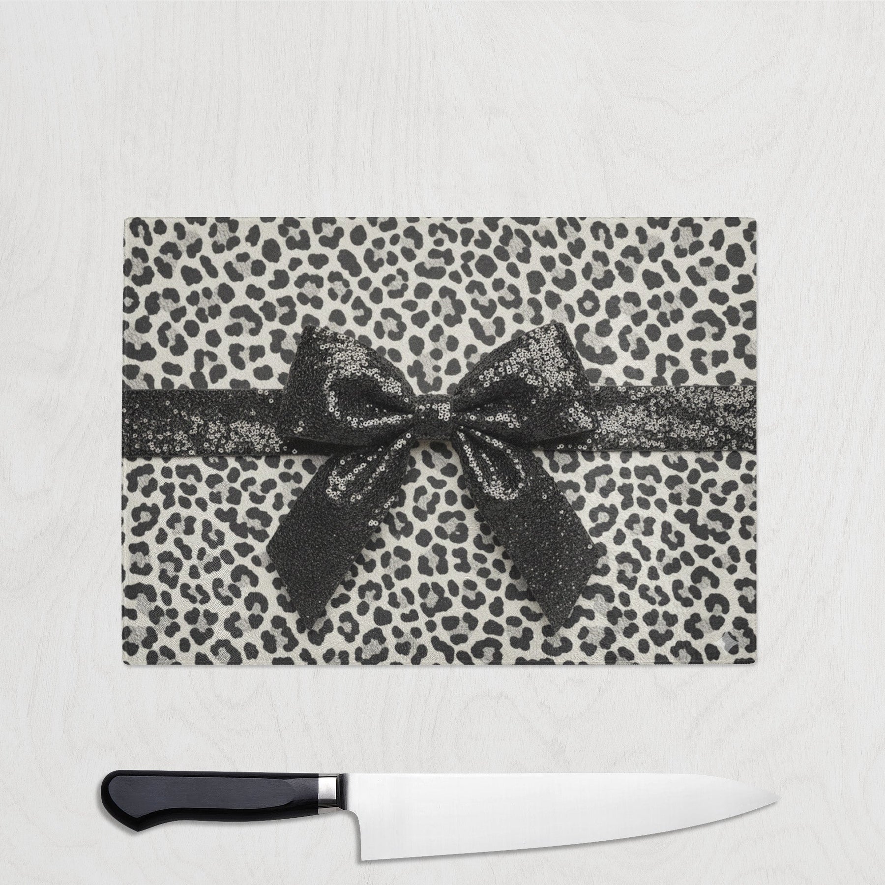 This glam sequin bow glass chopping board brings monochrome sass and sparkle to your kitchen because leopard is a neutral in our world!