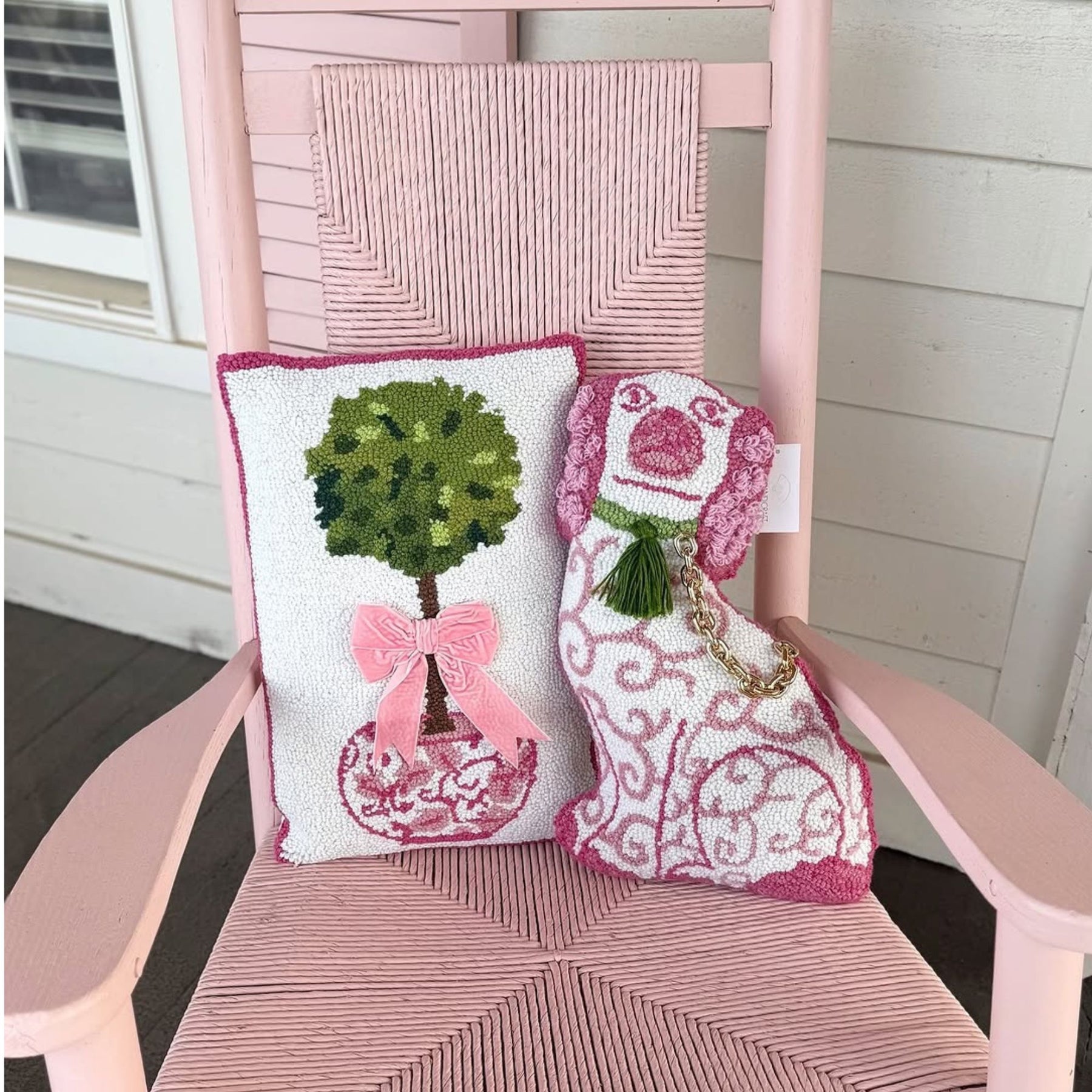 Pink Pup Hooked Wool Cushion – Fancy, Fluffy & Full of Sass 🐾💗
