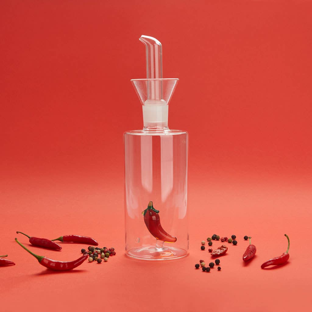 This isn’t your average oil bottle. Crafted from durable borosilicate glass, it features a glass chilli suspended inside — a subtle, fiery detail that adds instant style to your kitchen. The minimalist design feels sleek and sophisticated, while the clever drip-free spout keeps things neat as you pour.